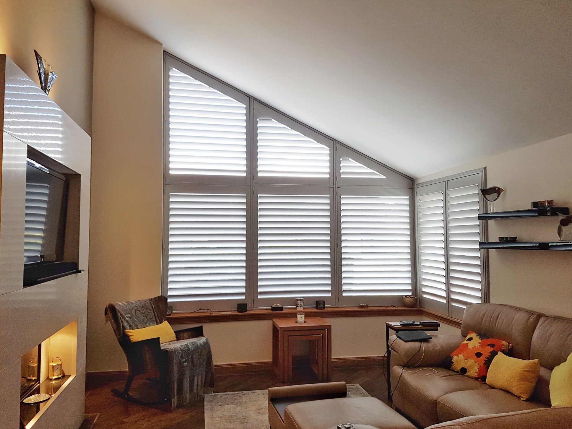 Why hide your features with a curtain or square blind when our made-to-measure shutters can be manufactured to fit exactly in or onto your feature window. And the amazing benefit of our special shape shutters is that this is a functional solution rather than just a window dressing.